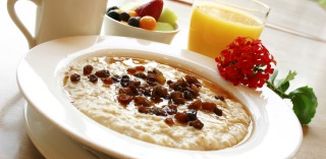 Breakfast of freshly prepared oatmeal topped with raisins. Served with your choice of coffee or orange juice and a cup of fruit.Waarom is ontbijten belangrijk?